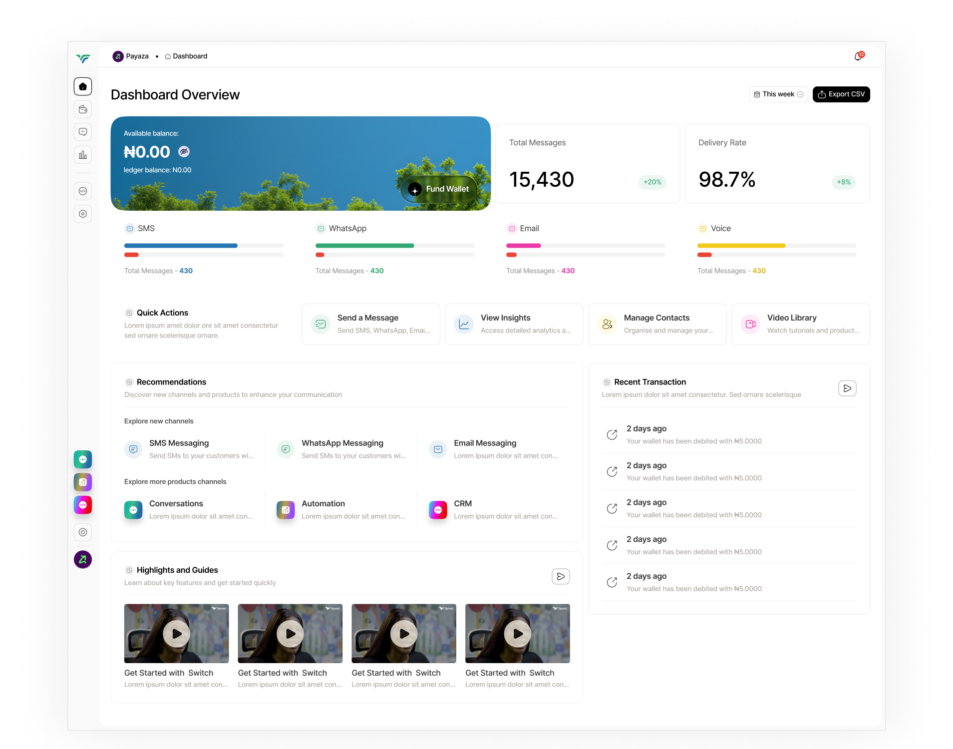 Send OTPs, transaction alerts, and fraud warnings instantly via SMS, Voice, or Email. Termii Switch, our reliable OTP API, ensures every critical message reaches customers safely , without delays or delivery gaps.