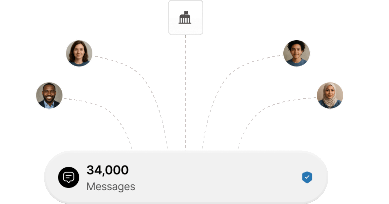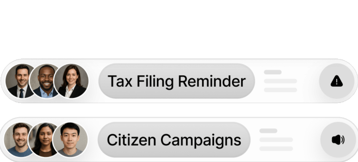 Health drives, voter education, and policy updates delivered through targeted, measurable messaging.